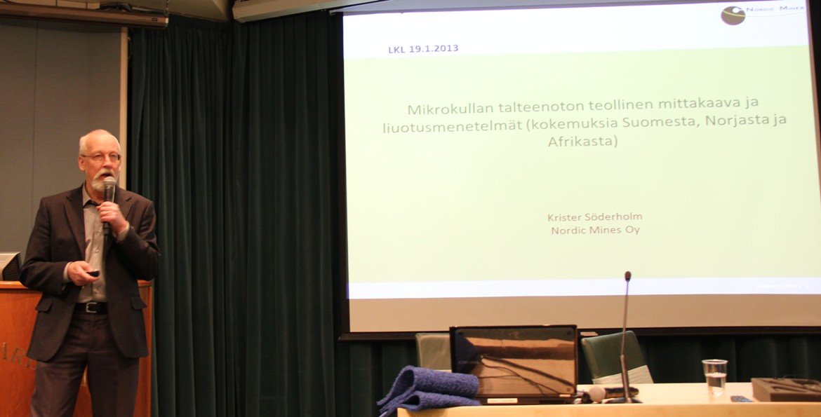 Krister Söderholm, DI, kultakaivoksen johtaja kertoi kokemuksistaan kultakaivoksista eri puolilla maailmaa ja erityisesti Raahen Laivan kultakaivoksesta, sen alkuvaiheista, vesiongelmista ja nykytilanteesta.