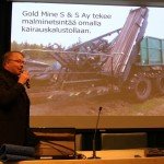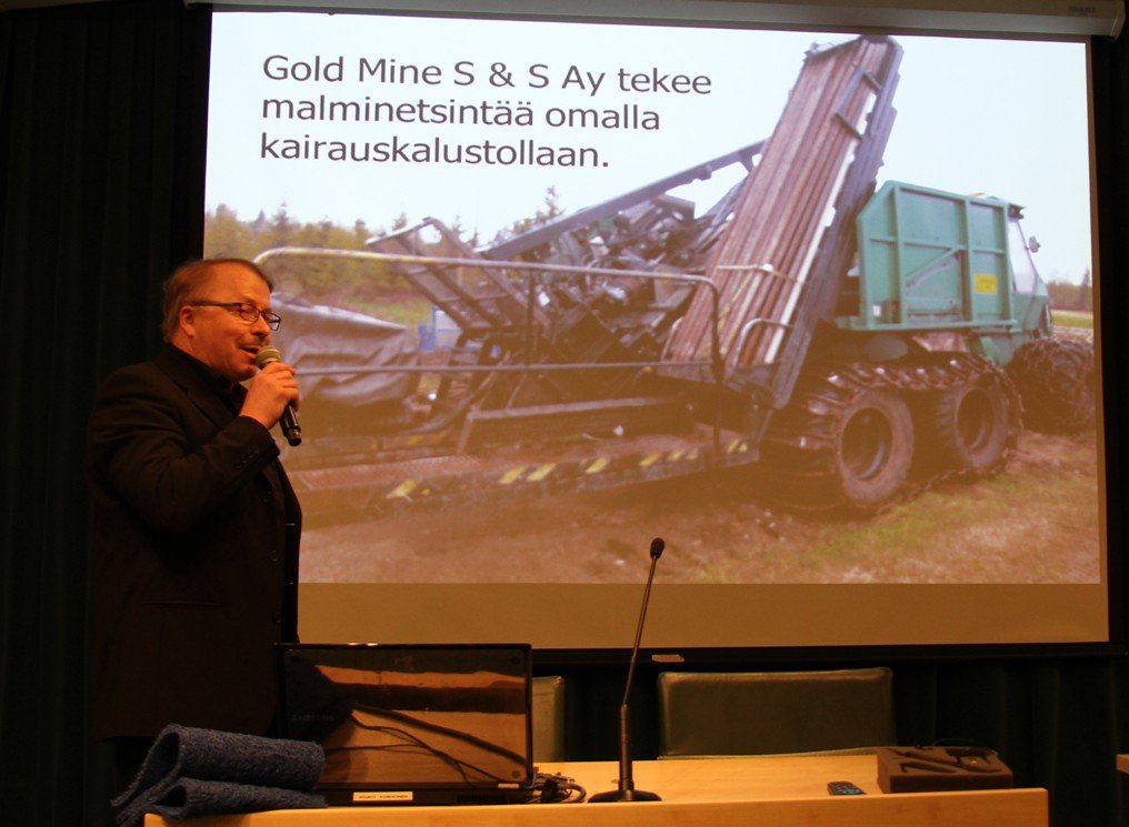 Harri Siitonen, kaivosyrittäjä esitteli pienkaivostoimintaansa Kittilässä. Hän kertoin pienen mittakaavan murskauksesta, seulonnasta ja jauhatuksesta sekä kullan erottelumenelmiä. Hän on kaivanut kannattavasti jo vuosikausia kultaa rapautuneesta kalliosta.