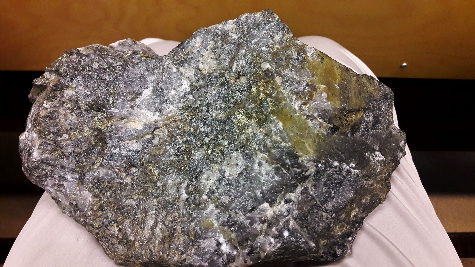 150 vuotta jatkunut kullankaivu Lapin puroilta ja avannut tien myös monen kaivoksen perustamiselle. Tässä näyte Raahen kultakaivoksen kultamalmista Pekka Tuiskun esittelemänä