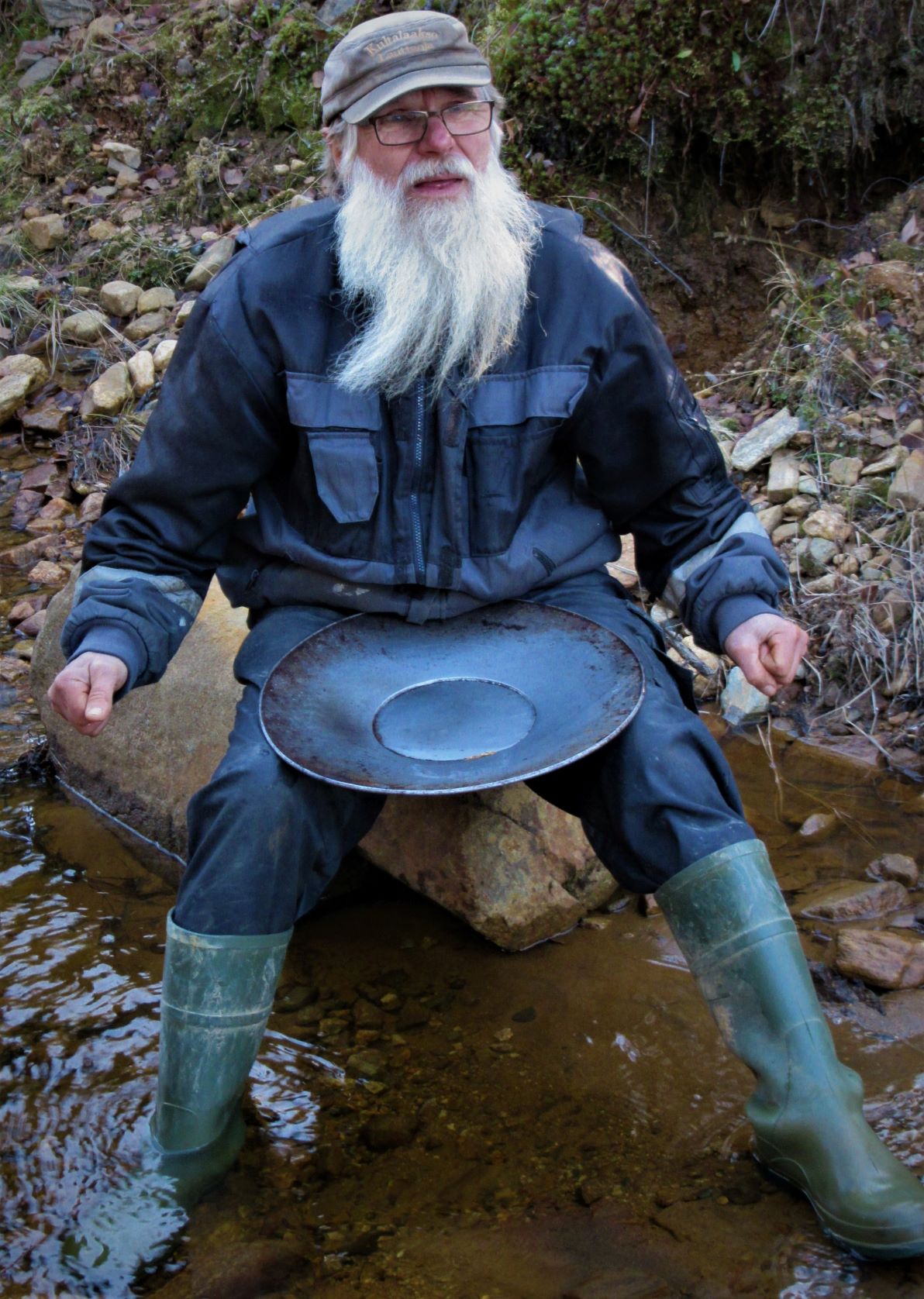 Seppo Maunon ei enää tarvinnut näytellä vanhaa kullankaivajaa. Lokakuisessa tunturipurossa rannat ja sormet jäätyvät.