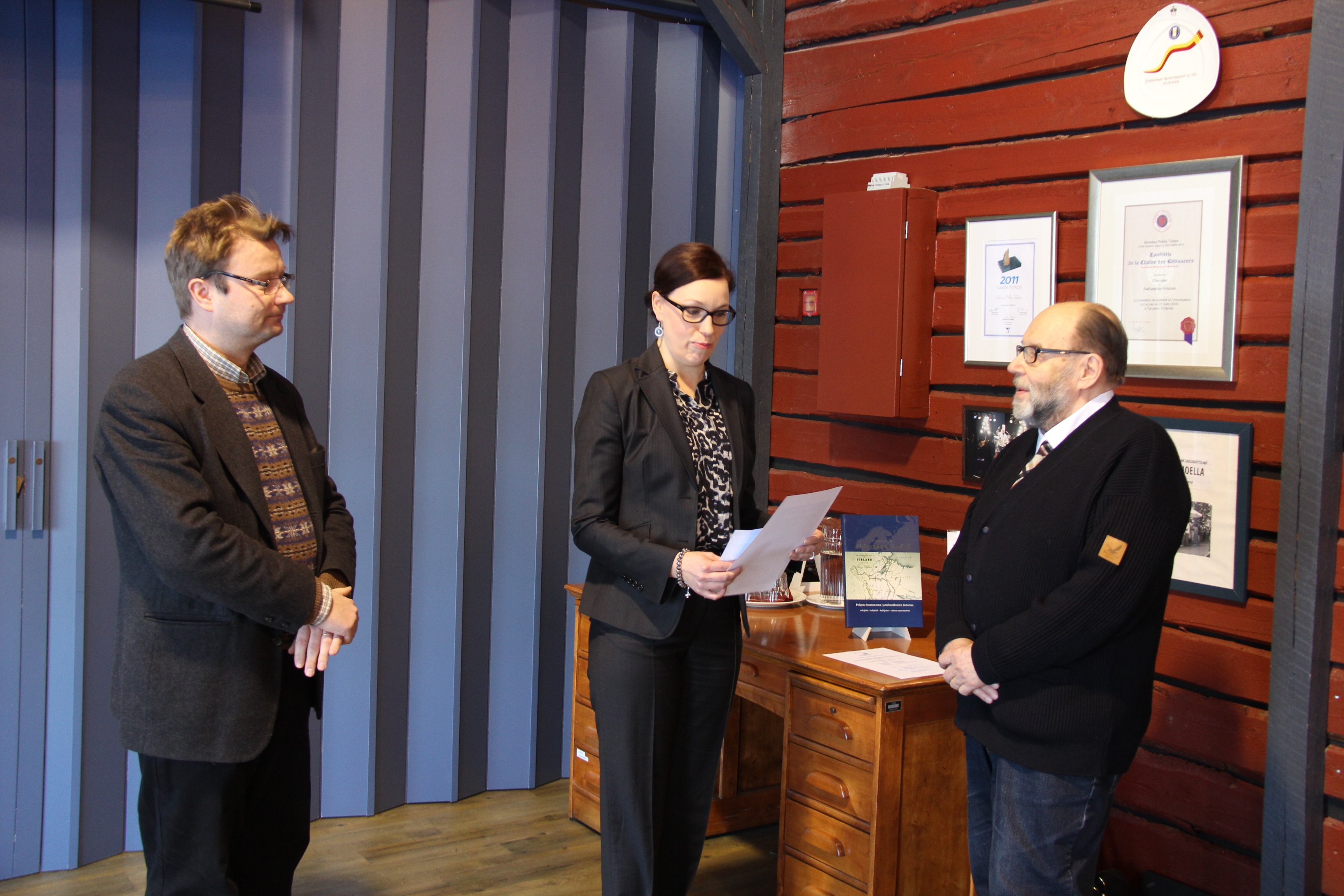 Palkinnon jakoivat Mobilia museossa 30.1.2014 museojohtaja Heidi Rytky ja palkintolautakunnan pj dos. Marko Tikka.