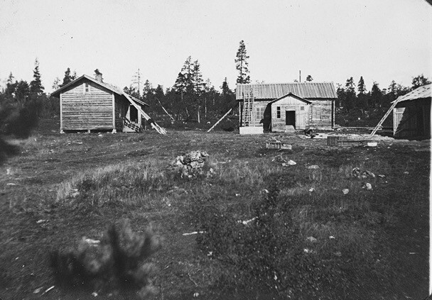 Laanilan majatalo palveli matkailijoita ja kullankaivajia yli 30 vuotta 1910-luvun alusta alkaen. Kuva lienee 1940-luvun alusta. Max Peronius/Antti Peronius.