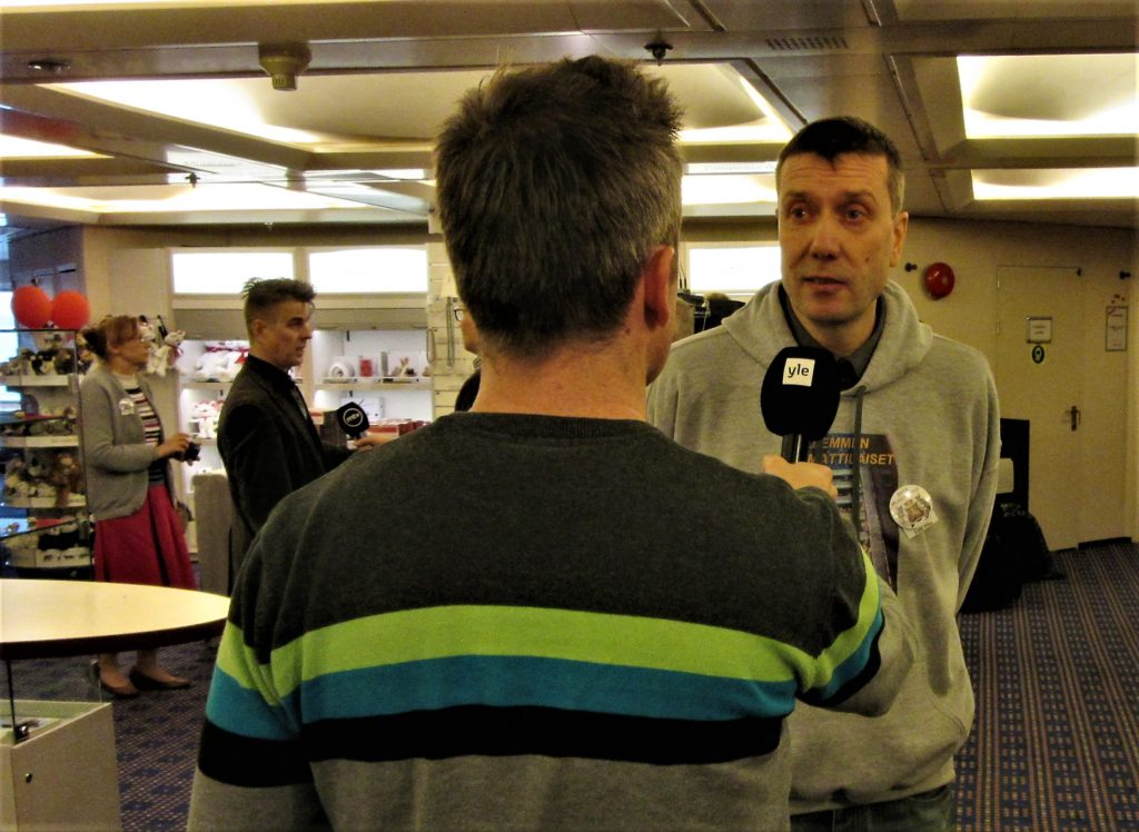 Kullankaivu ja isot kultahiput kiinnostivat mediaa. Tässä televisotoimittajat jututtavat etualalla Mika Telilää ja takana Kai Rantasta.